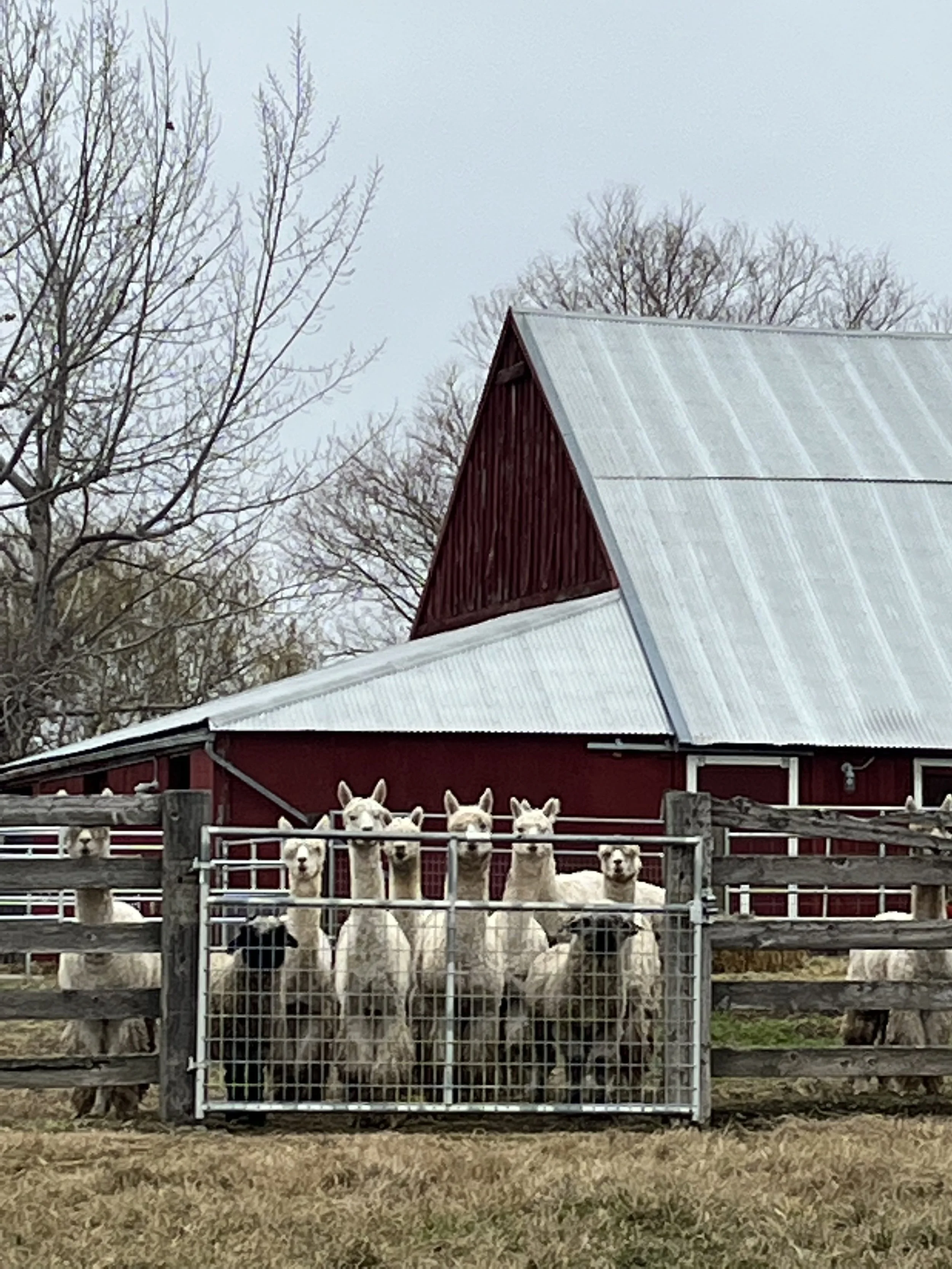 If you come out to the farm in early summer, maybe for a workshop, a bouquet pickup, or Yoga with Alpacas, when you arrive, you’ll probably hear the alpacas before you see them.